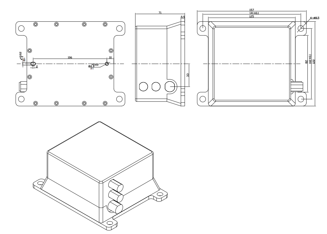 尺寸 | 157mm X 122mm X 71mm(含安装耳) |